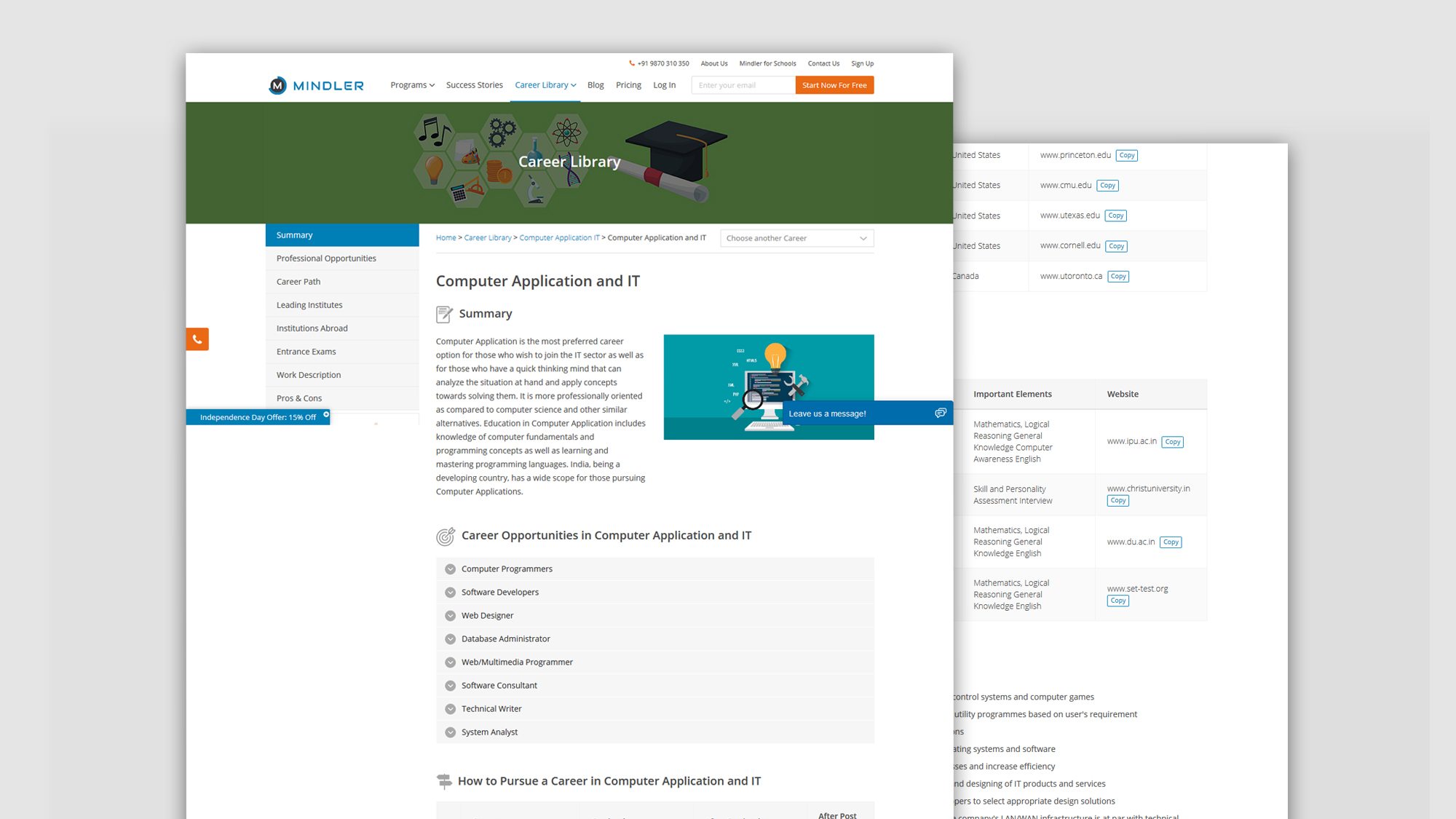 The Project - Mindler, have the perfect blend of education + technology of excellence + experience Andan unmatched passion to make sure that every student progresses on the right path. Students spend 70% of their adult life at the workplace. Career decisions are one of the most important decisions in a student's academic and professional journey. It is essential that these decisions are made with utmost care and expertise.